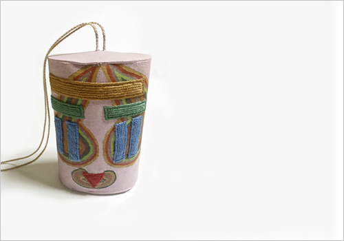 I STARTED WITH A MASK THEN SOME DECORATION GOT ADDED, pendant, 2022, linen, thread, filling, acrylic paint