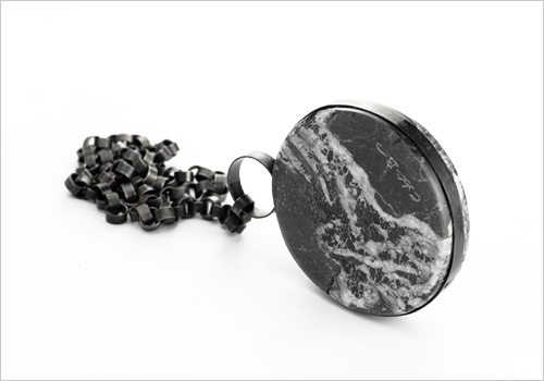 necklace, „3:33“, Portoro marble, 2024, silver 925