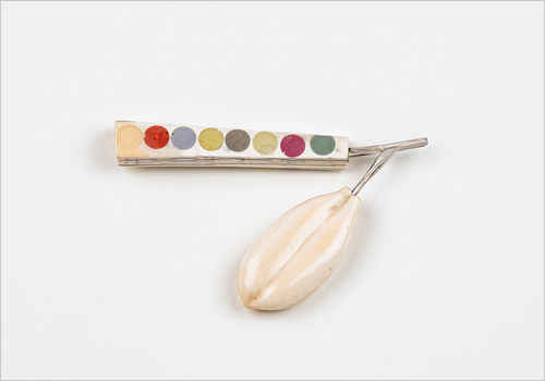 brooch, 2026, WINTER – IMAGINING SPRING, silver, bone, plastics
