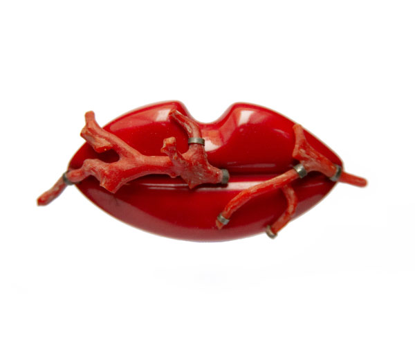 I began to engrave with passion, visions washing my impatient hands. I moved emotionally away from my dark streaks of the last few years. I longed for cheerful, surrealism liberating the heaviness of thought. Lush, colorful, cheeky lips. I also saw something rococo in them, maybe even salon-like. The petty-bourgeois charm of corals and pearls required honest frivolity. And even when I cast black ebony, it turned out to be a shade of red rather than a gloomy terminus. There was probably an intervention of vital factors in this duel between